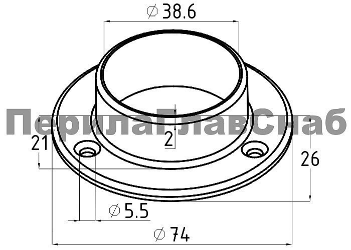 Фланец для трубы диаметром 38.1 мм. Полированный, литой, под три самореза 4.8 мм. Марка стали - AISI 316