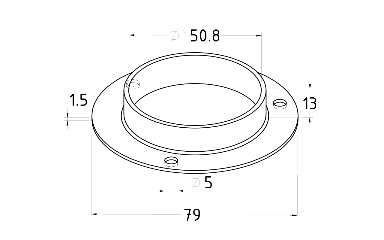 Фланец для трубы Ø50.8 мм, литой, полированный под 3 самореза 4.8 мм (AISI 304) k022