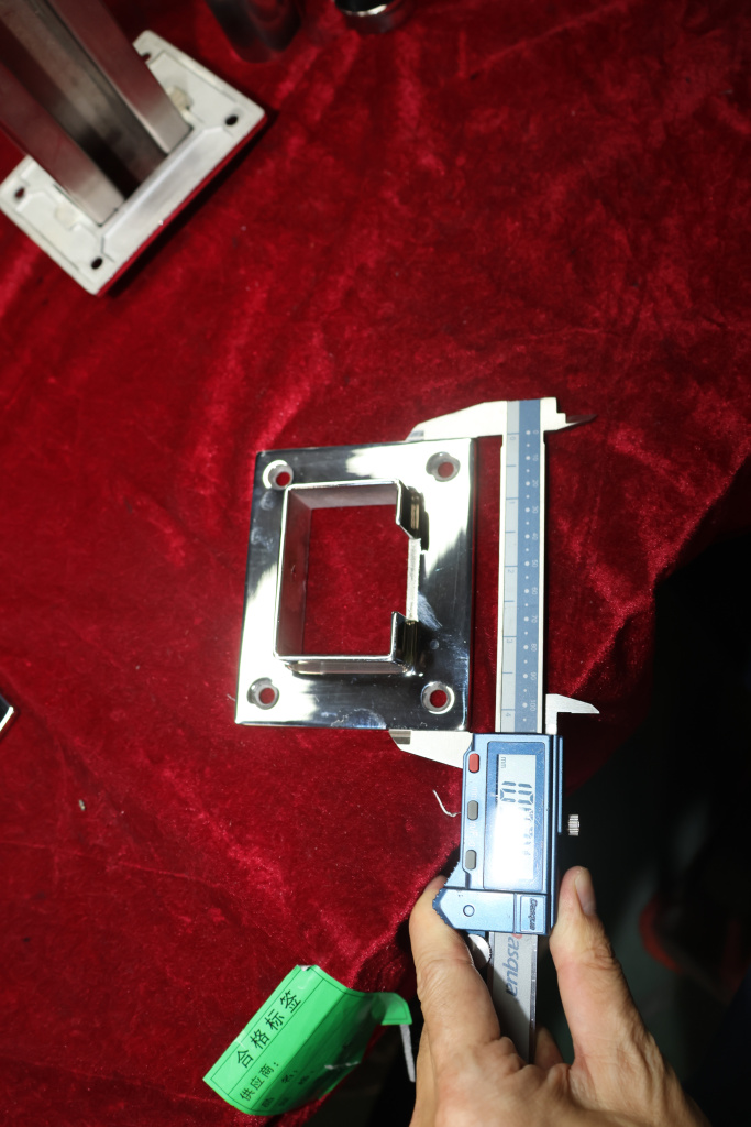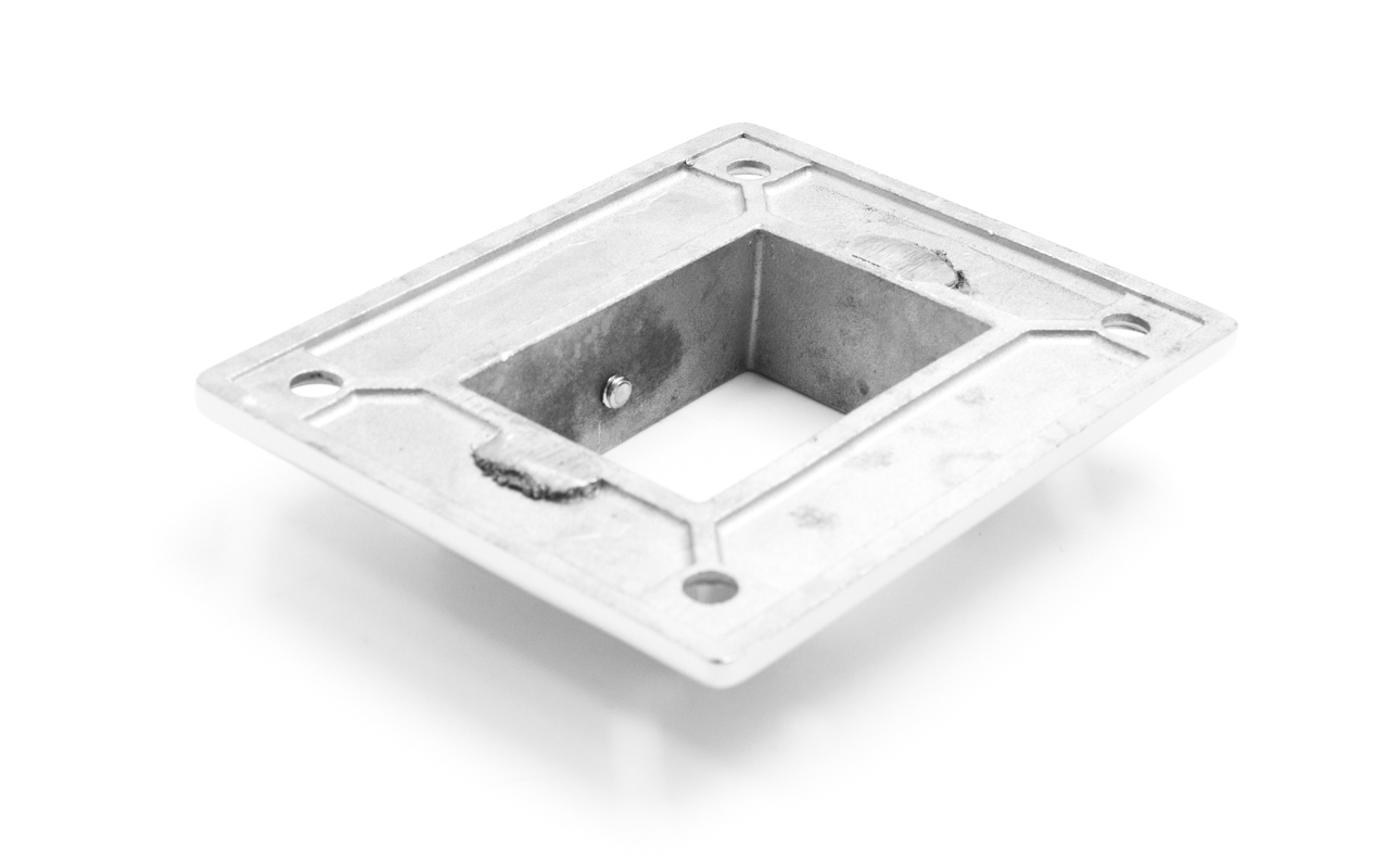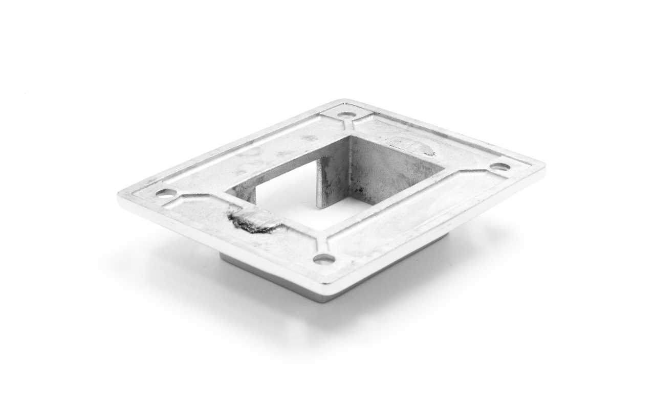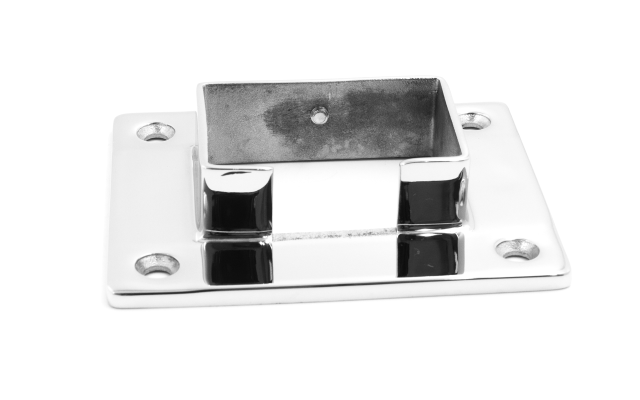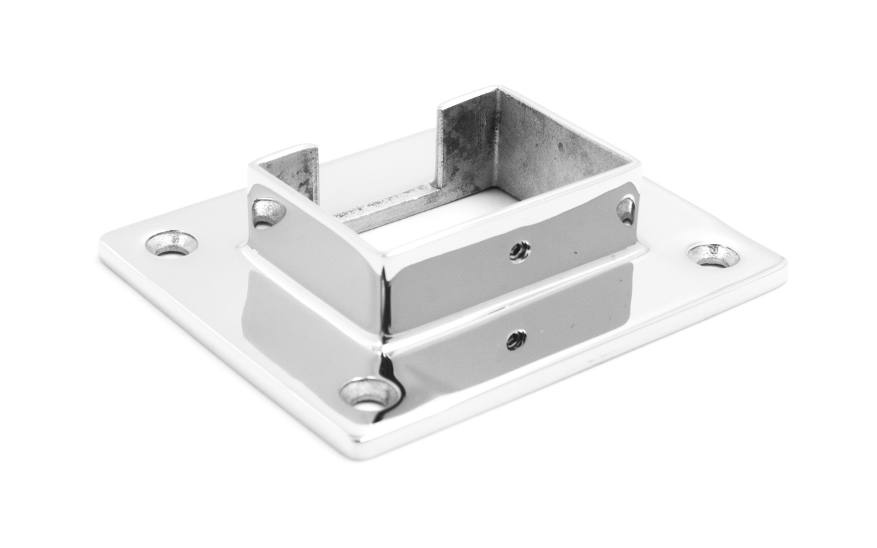 Фланец с четырьмя отверстиями для трубы с пазом 40х60 мм. Деталь полированная, литая. Марка стали - AISI 304