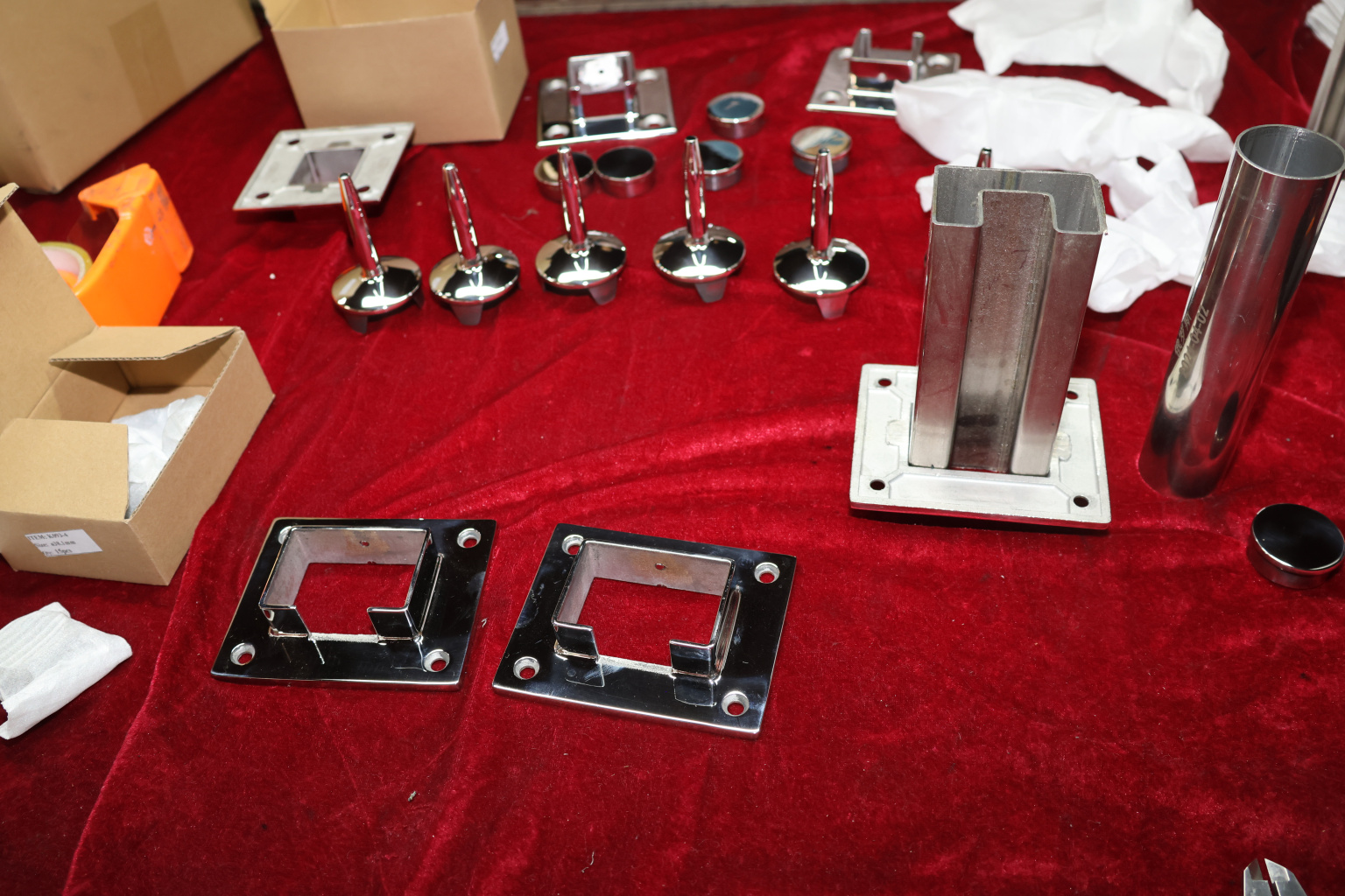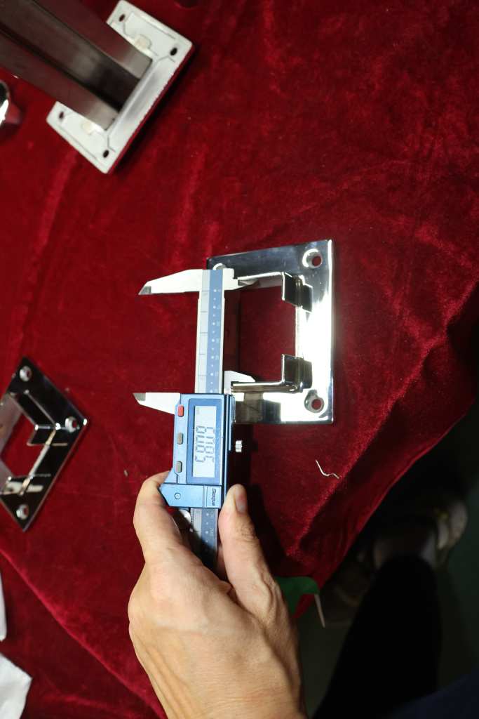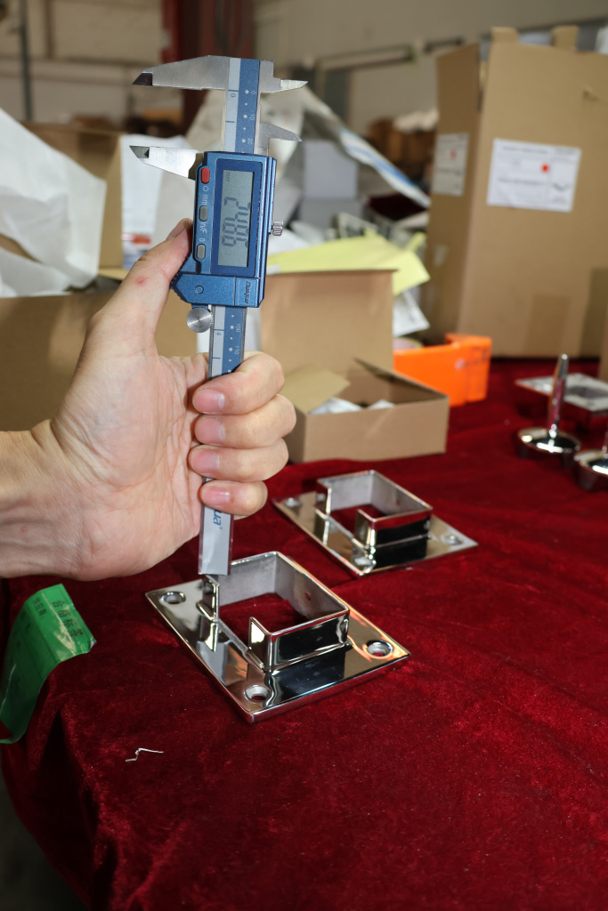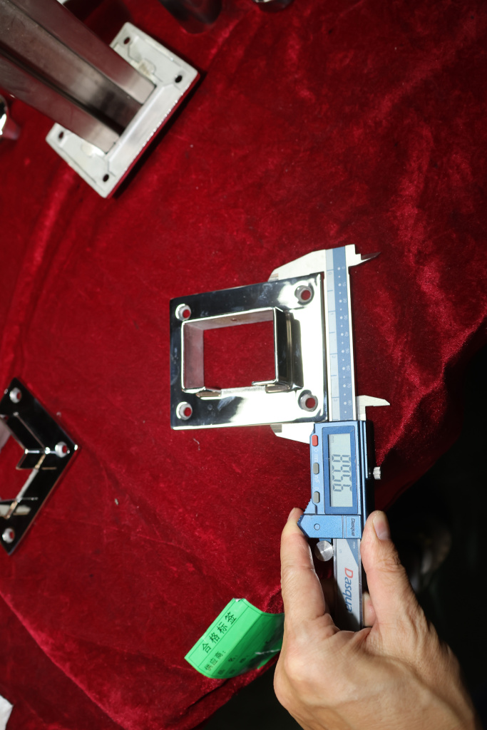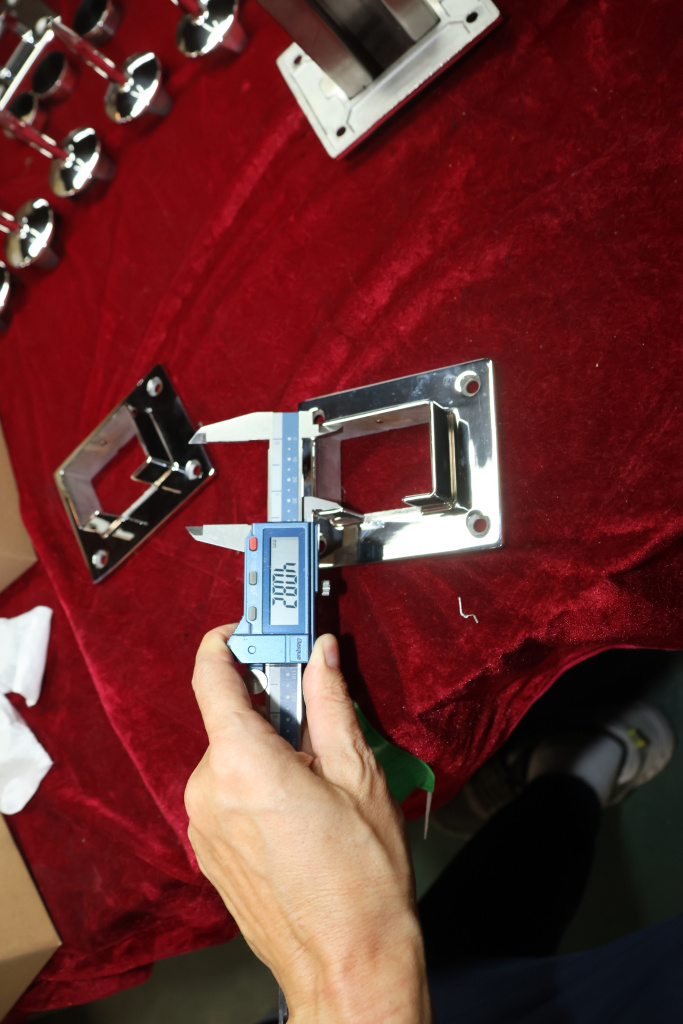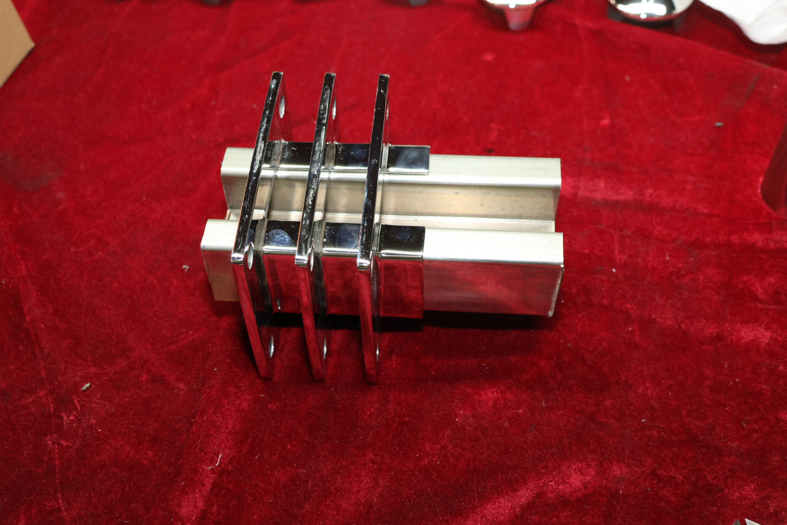 Фланец с четырьмя отверстиями для трубы с пазом 40х60 мм. Деталь полированная, литая. Марка стали - AISI 304