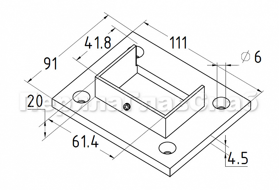 Применяется для крепления трубы 40x60 мм поручня лестничных перил в стену на объектах с несущим стеклом или с подсветкой.