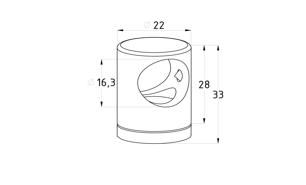 Ригеледержатель на стойку под плоскость Ø16 мм, литой, Ø22х30 мм, полированный, (AISI 304) k065-2