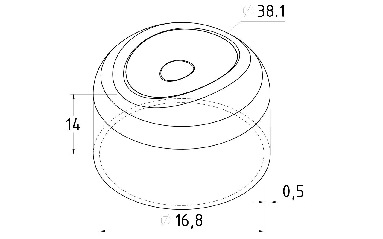 Наконечник штампованный (СПС) прямой 90° на трубу Ø16 мм, для поручня Ø38.1 мм, полированный, нержавеющий (AISI 304) k211