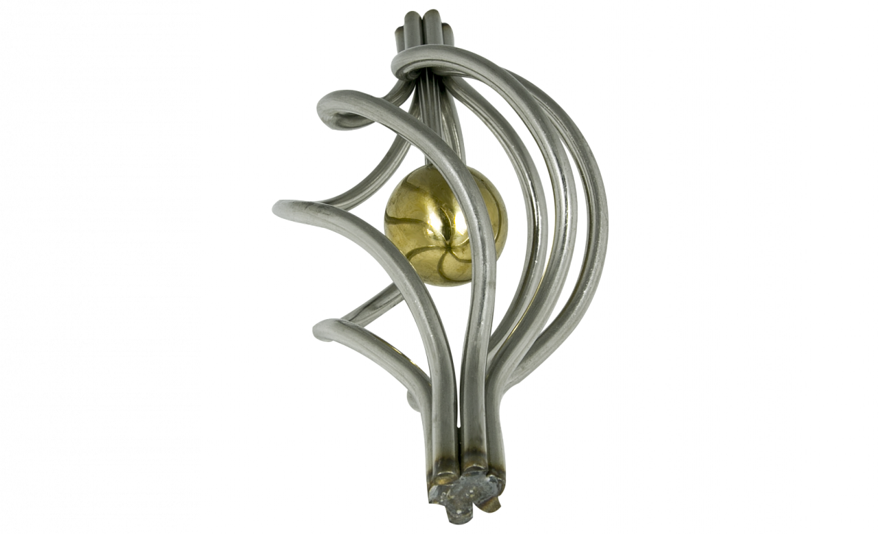 Декоративная вставка (корзинка) для стойки Ø25 мм, с золотым шаром. Деталь полированная, литая. Марка детали - AISI 304