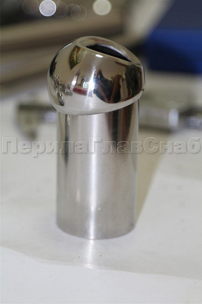 Наконечник штампованный (СПС) прямой 90° на трубу Ø38.1 мм, для поручня Ø38.1 мм, полированный, нержавеющий, AISI 304, 600Grit, k017-2