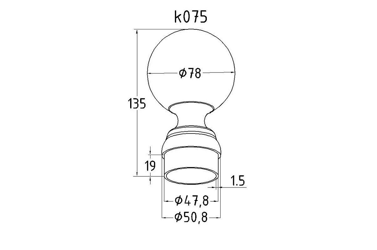 Наконечник шар на стойку Ø50.8 мм, литой, полированный, AISI 304, k075