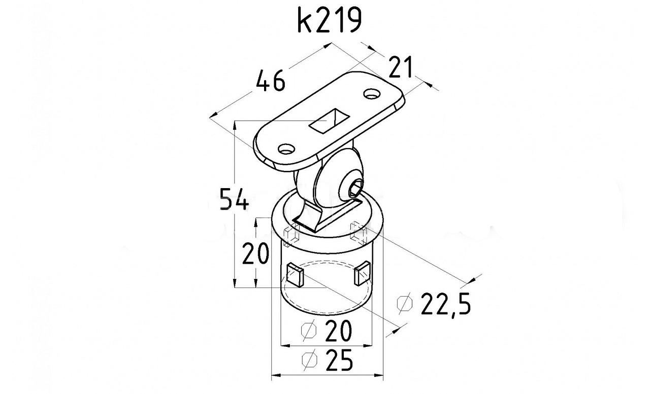 Наконечник на стойку Ø25.4 мм, с ложементом под поручень Ø38.1 мм, шарнирный, регулируемый, внутренний