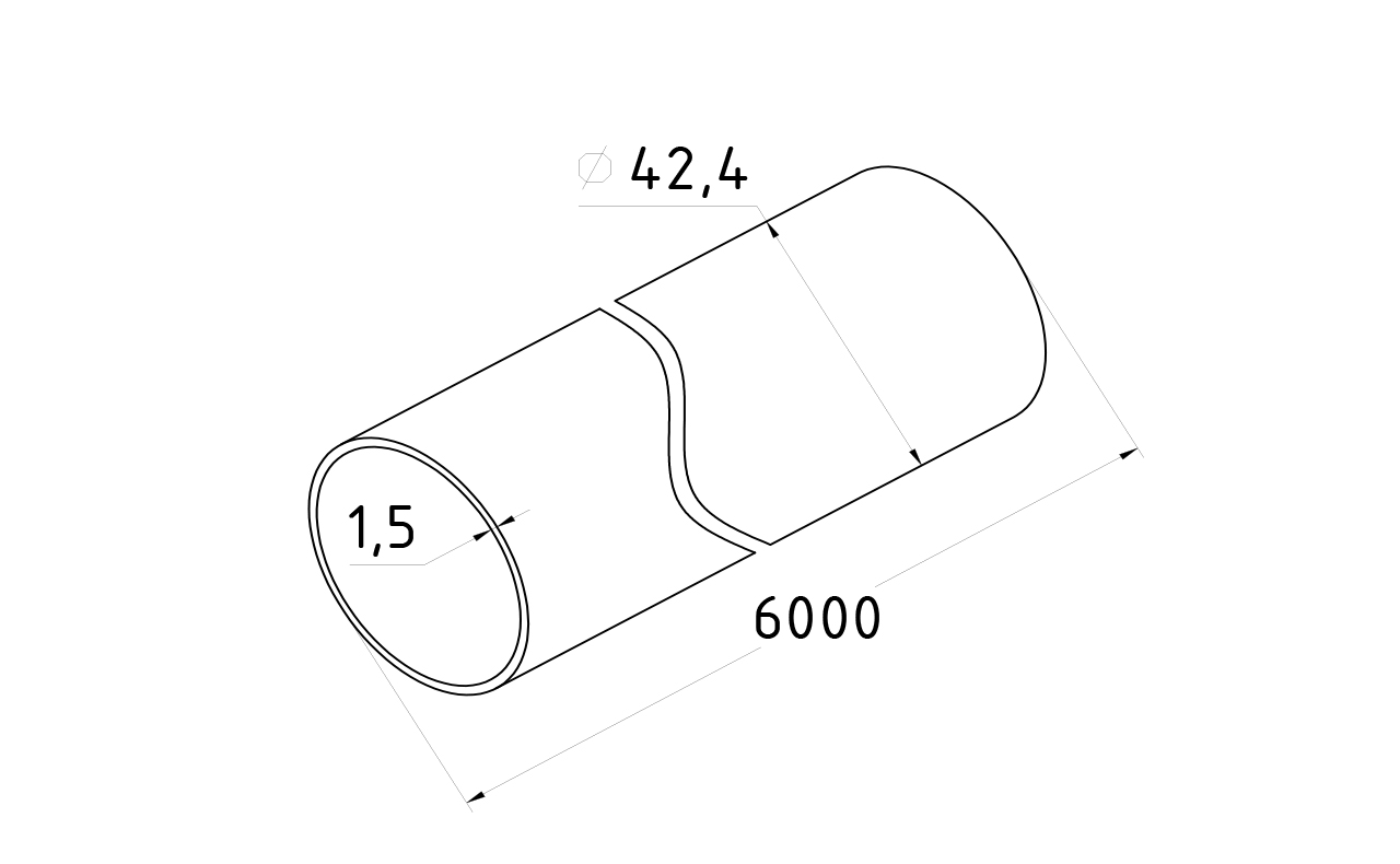 k845 труба Ø42.4х6000 мм, полированная 600 GRIT, (aisi 304)