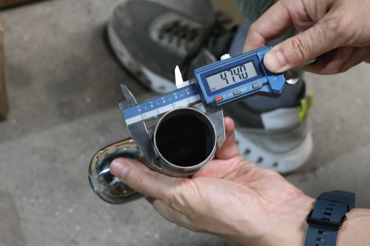 Отвод оконечный литой под трубу диаметром 50.8 мм, с круглой заглушкой. Деталь полированная 600Grit, литая, марка стали - AISI 304