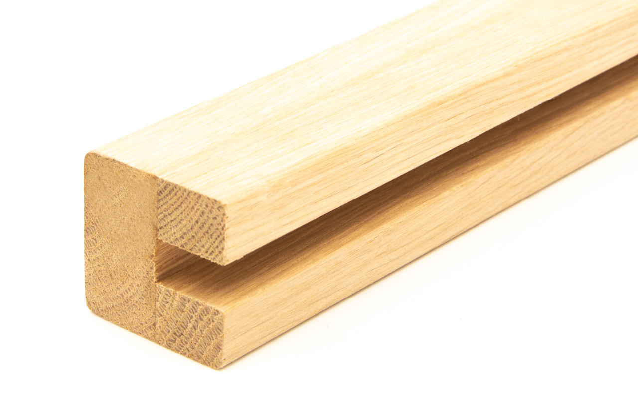 Поручень из древесины дуба 40х40мм с пазом под стекло