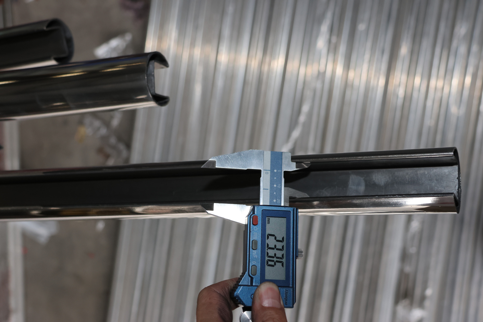 Труба Ø42.4 мм, с пазом 24х24, тройная полировка 800GRIT, (AISI 201) k820