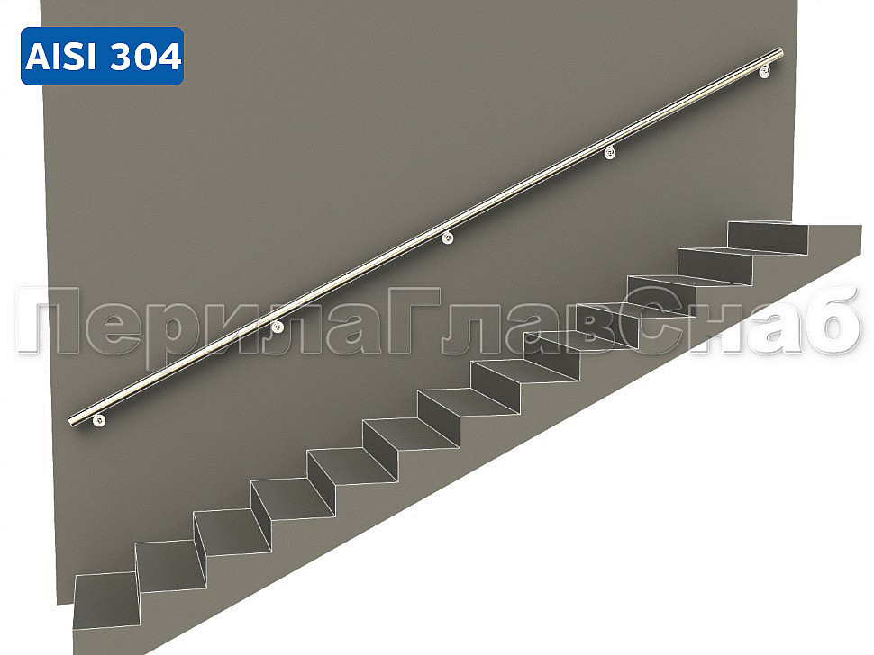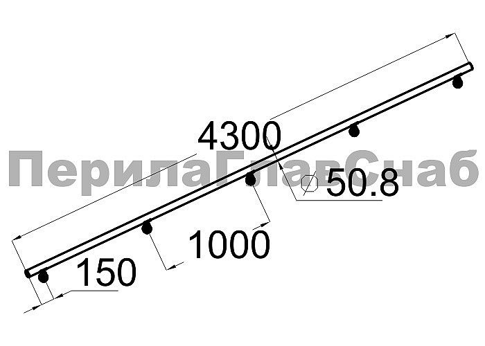 Готовый пристенный поручень с 5 держателями, длина 4300мм (aisi 304)