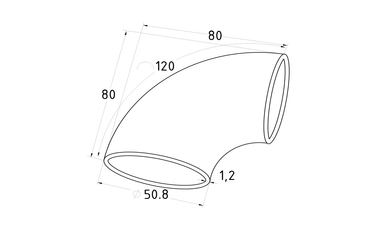 Отвод Ø50.8 мм, облегченный, полированный (AISI 201) k052-5 купить в Казани