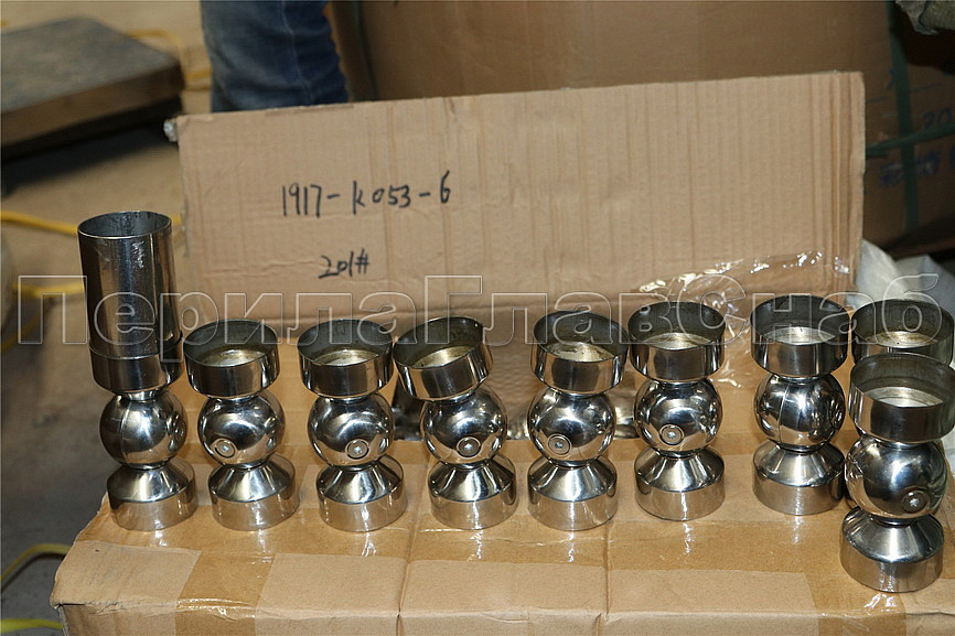 Прочность, надежность, качество полировки поверхности дает возможность использовать поворот в элитных конструкциях с качественным деревянным поручням. Более экономичный вариант этого поворота - k053-5.