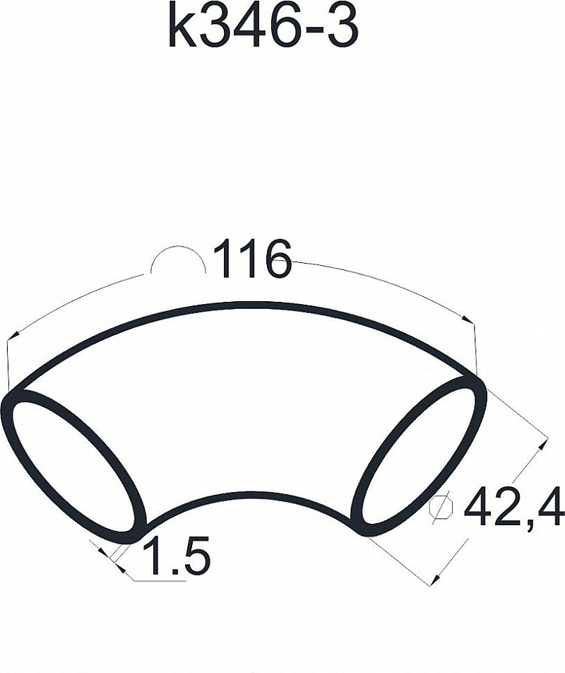 Предназначен для поворота нержавеющего поручня Ø42,4 мм и толщиной стенки 1.5 мм стальных ограждений любого типа. Знакомая всем без исключения сварщикам-аргонщикам и монтажникам деталь применяется во время монтажа практически постоянно. Это и завязка поручня ограждения на повороте марша, и так называемый подскок поручня, и выход в горизонт. Всем нужна, проста, понятна. Сечение кромки отвода представляет собой круг, поэтому так нужна эта деталь во время монтажа, ведь если загнуть трубу, а потом отрезать, то сечением кромки будет овал. Но как его состыковать во время сварки с ответной частью? Ведь в месте стыковки, после среза, сечением второй детали может быть круг, а может быть овал, но вдобавок ко всему развернутый уже под другим углом, а то и вовсе, находящийся в другой плоскости. Поэтому конструкторами нашей компании была разработана именно эта модель сварного отвода специального размера для завязки нержавеющего поручня ограждения на узких лестничных маршах.