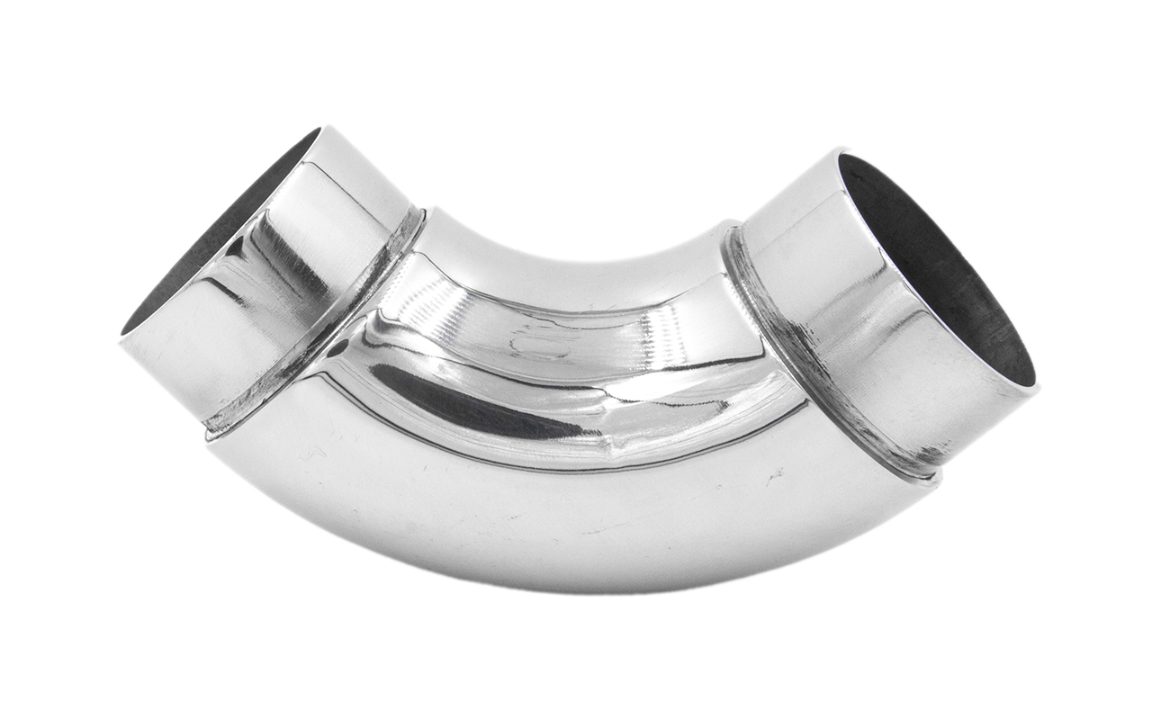 Отвод поручня под Ø42.4х1.5 мм, 90°, литой, полированный 600 Grit, с двумя установочными кольцами (aisi 316) k383-5