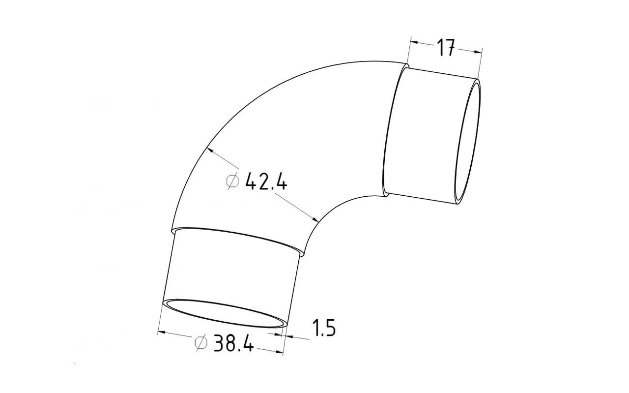 Отвод поручня под Ø42.4х1.5 мм, 90°, литой, полированный, с вставками.
