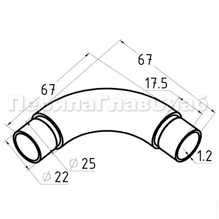 Отвод поручня Ø25.4 мм, 90°, полированный, (AISI 304) k347 купить в Казани