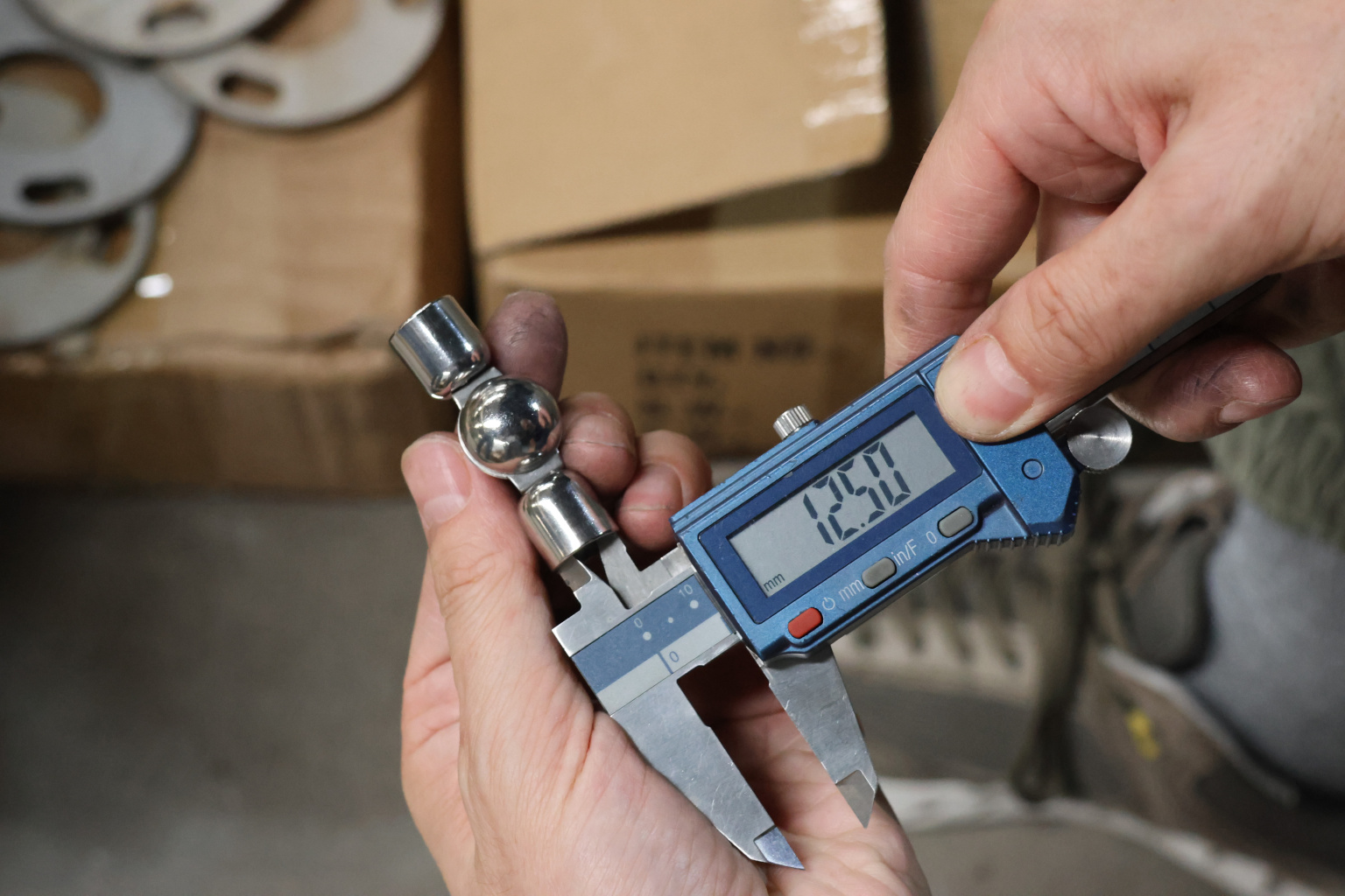 Поворот ригеля Ø12 мм, регулируемый, шаровый, внешний. Деталь полированная, штампованная. Марка стали - AISI 304