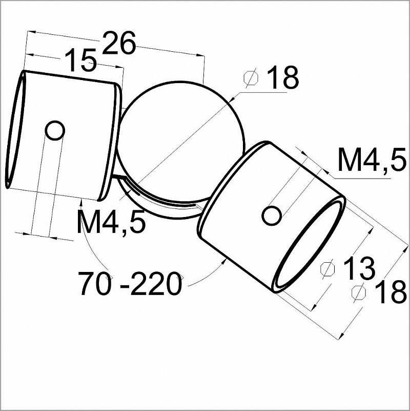 Применяется во время монтажа самосборных ограждений из нержавейки для наружного соединения ригельных струн Ø12 мм. Фитинг выполнен из нержавеющей стали, пригодной для применения на улице, вне помещений. Деталь используется монтажниками для завязки нержавеющих ригелей на поворотах ограждения. Для применения на уличных конструкциях лучше подварить фитинг к трубке тетивы ригеля, дабы не провоцировать вандалов расхитить комплектующие с готового ограждения. Патрубки фитинга надеваются прямо на ригель и фиксируются штатными стопорными винтами, входящими в комплект поставки. В качестве альтернативы наружного поворота можно использовать более мощный, литой регулируемый нержавеющий фитинг k357.