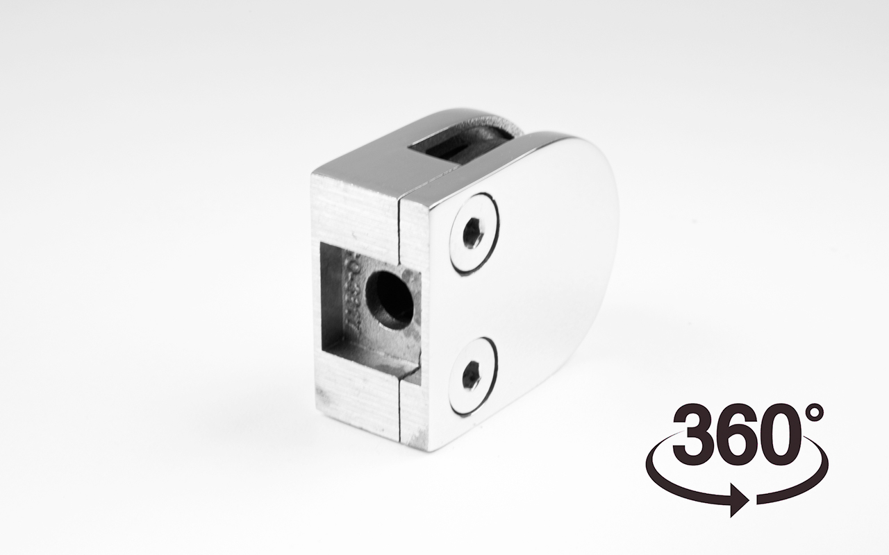 Стеклодержатель литой с вставками под стекло 8-10 мм, 4+4 мм, закругленный под стойку Ø38,1 мм (40х22х50), полированный, (AISI 304) k001-10 купить в Казани
