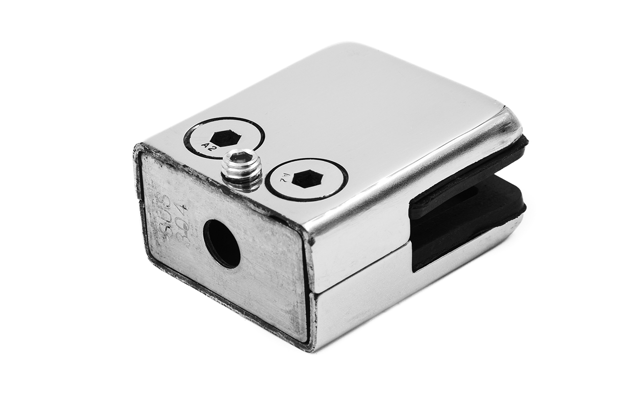 Стеклодержатель литой, под стекло 8-10 мм (4+4 мм), на плоскость 40х23х48 полированный (AISI 316) k002-4 купить в Казани