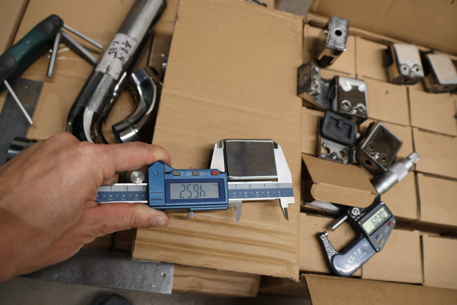 Наконечник на стойку из профильной трубы 40х40 мм, с регулируемым ложементом под плоскость, литой, полированный, нержавеющий AISI 304 k222-3 купить в Казани