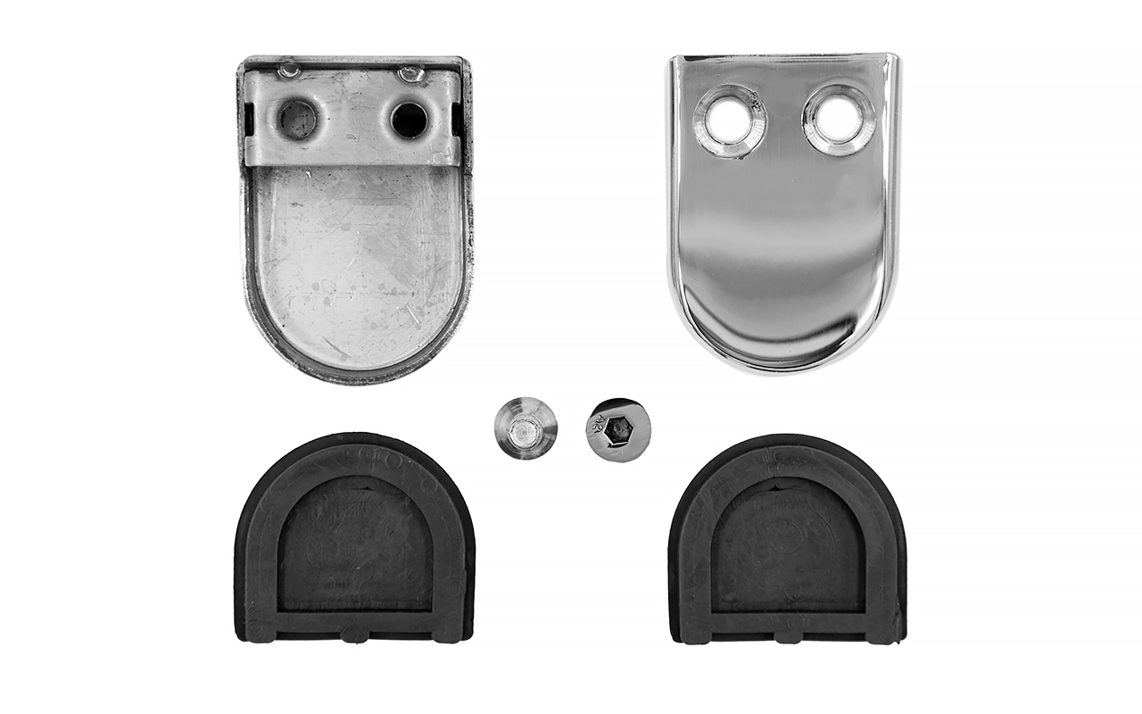 Стеклодержатель штампованный под стекло 8 мм (4+4 мм), под стойку Ø38.1 мм 40х24х55, полированный (AISI 304) k038