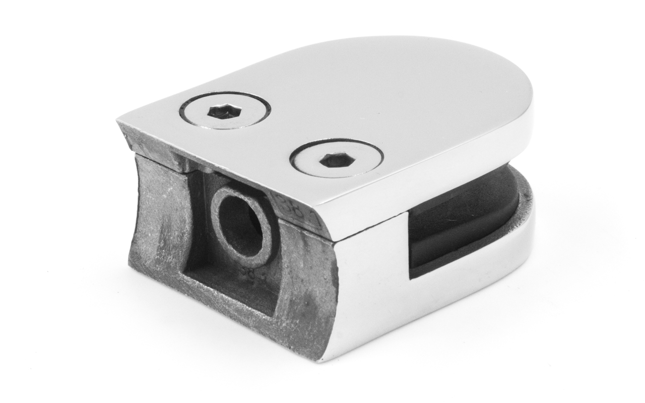 k001-4 стеклодержатель литой под стекло 8 мм под стойку Ø38.1 мм 40х22х49 полированный (AISI 304)