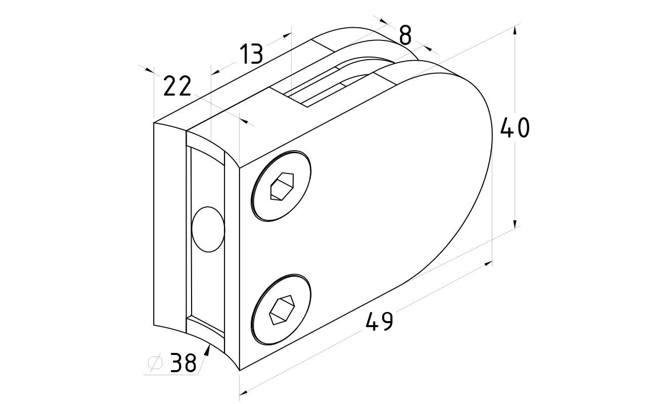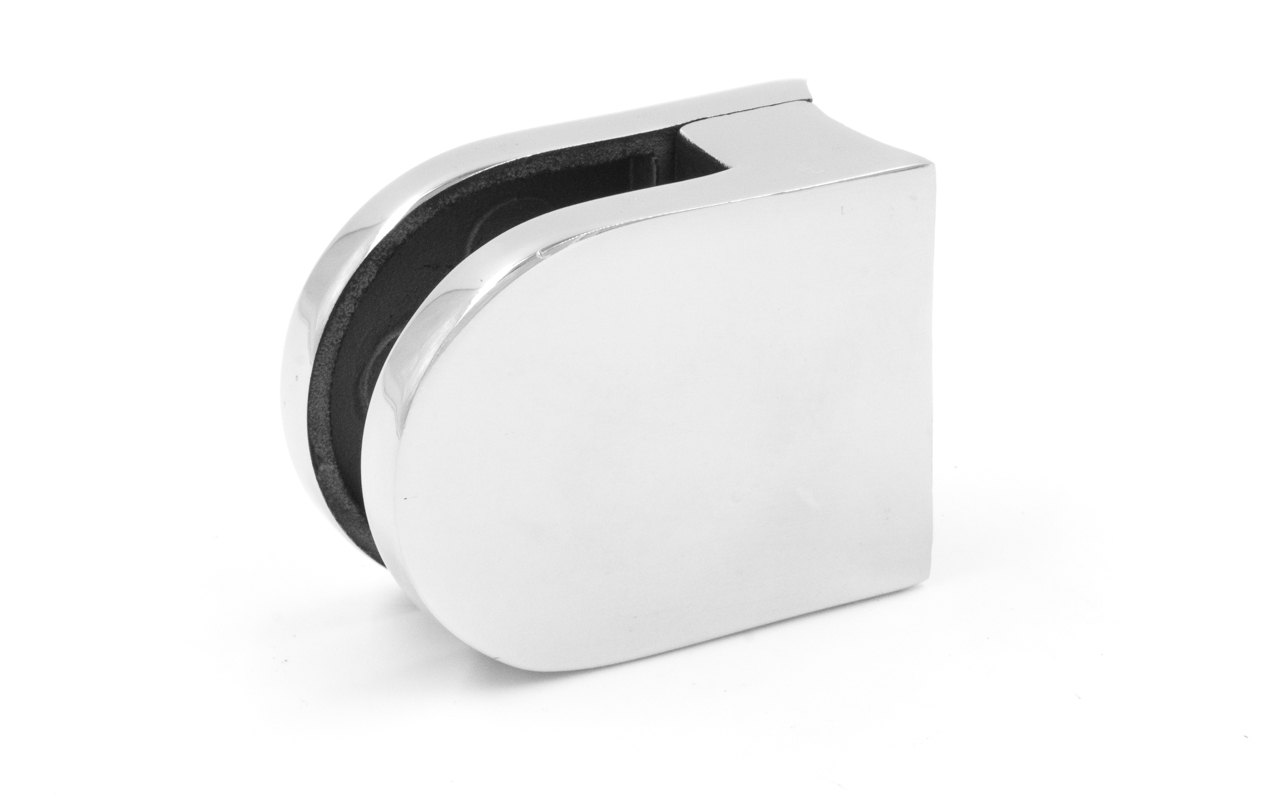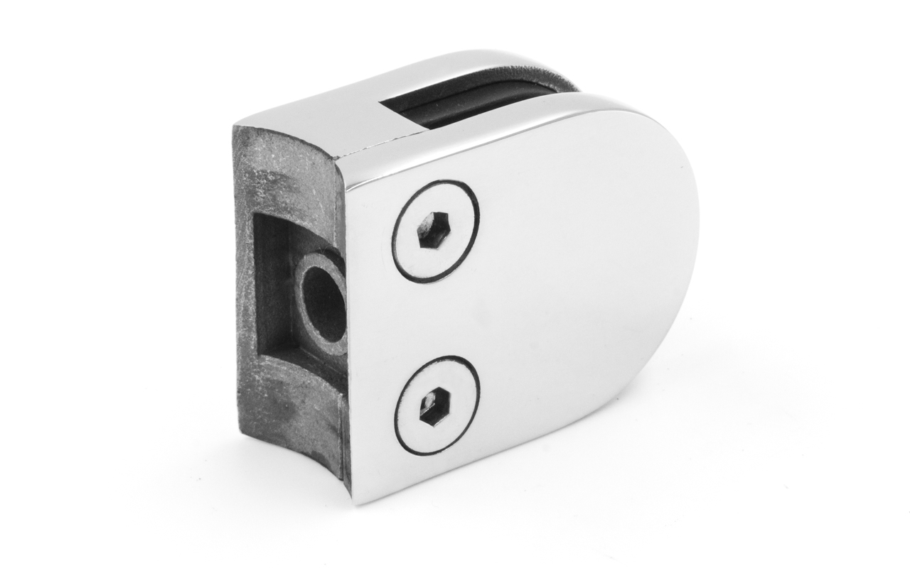Стеклодержатель литой под стекло 8 мм (4+4 мм), под стойку Ø38.1 мм 40х22х49, полированный (AISI 304) k001-4