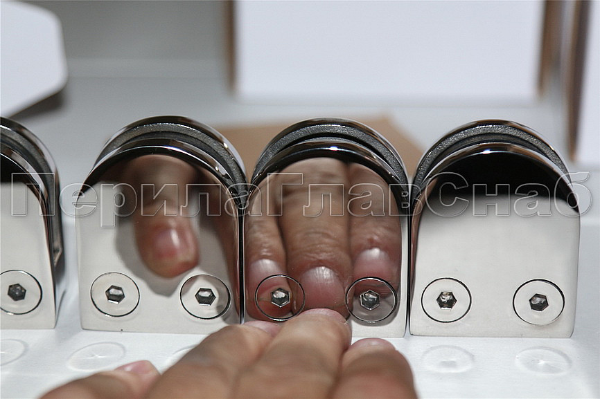 Вторая часть стеклодержателя присоединяется к первой входящими в комплект специальными винтами под шестигранный ключ (тоже входит в комплект). В этот момент стекло зажимается между двумя половинками детали специальными высокотехнологичными уплотнителями из EPDM.