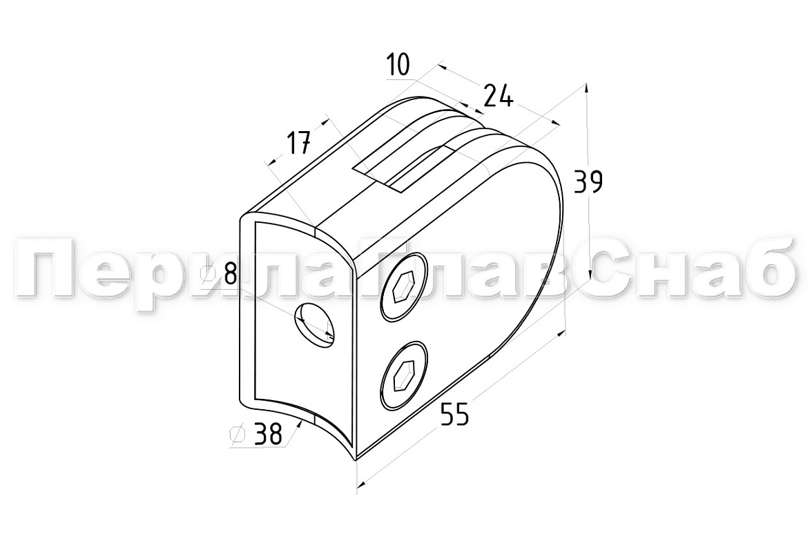 Стеклодержатель штампованный под стекло 10 мм (5+5 мм), под стойку Ø38.1 мм (39х24х55), полированный (AISI 304) k538-10