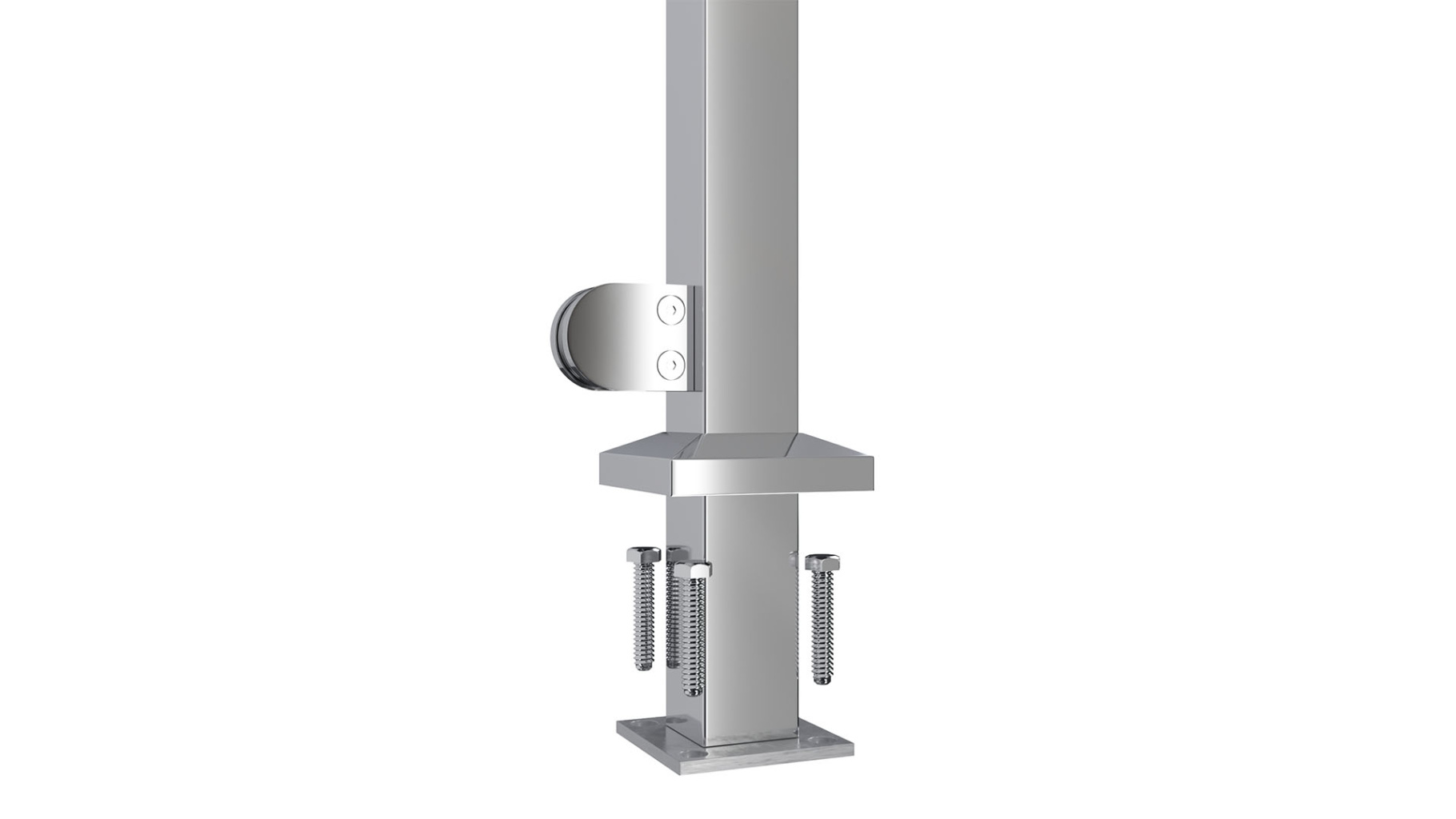 Cтойка квадратная 40х40: 2 литых зажимн. стеклодержателя, полированная, высота 950 мм (aisi 304)