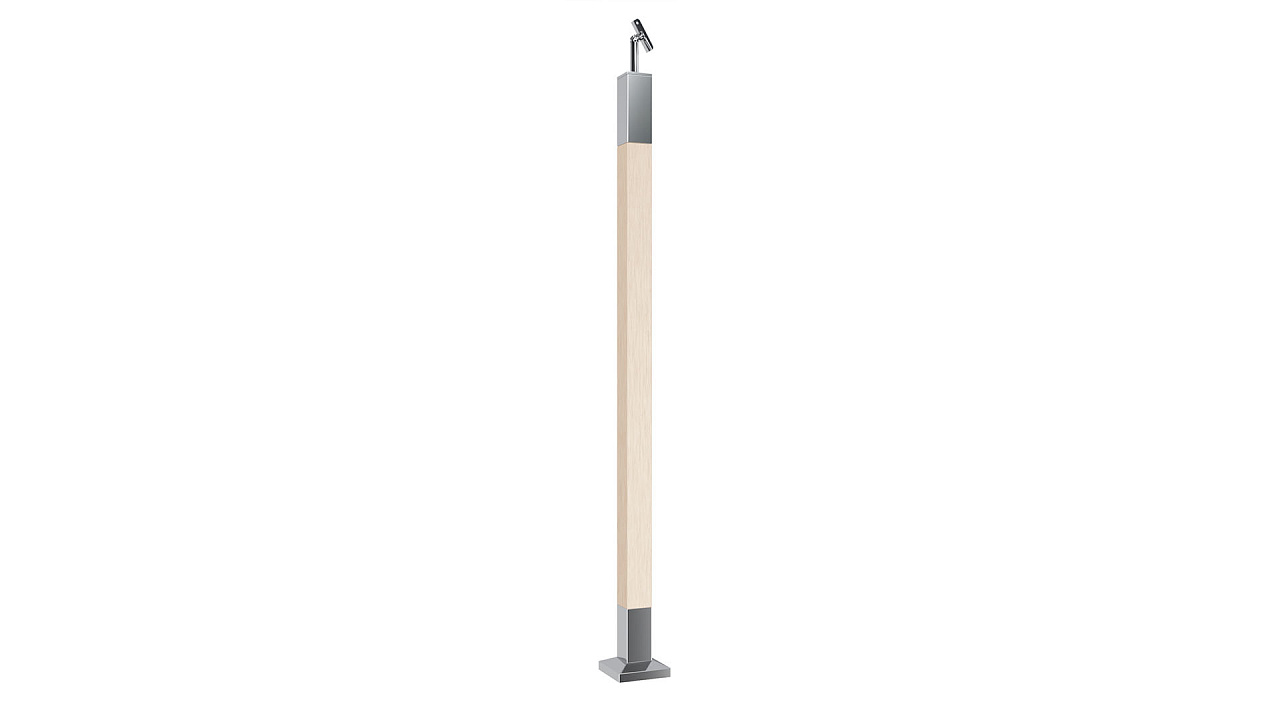 Готовая стойка 40х40х950 мм, деревянная, со вставками из нержавеющей стали 2х100 мм с 2 зажимными стеклодержателями k740-4-L купить в Казани