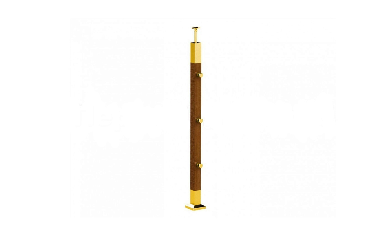 Готовая стойка 40х40х950 мм, деревянная, со вставками из нержавеющей стали 2х100 мм с 2 пластинчатыми стеклодержателями, под золото k740-2-G купить в Казани