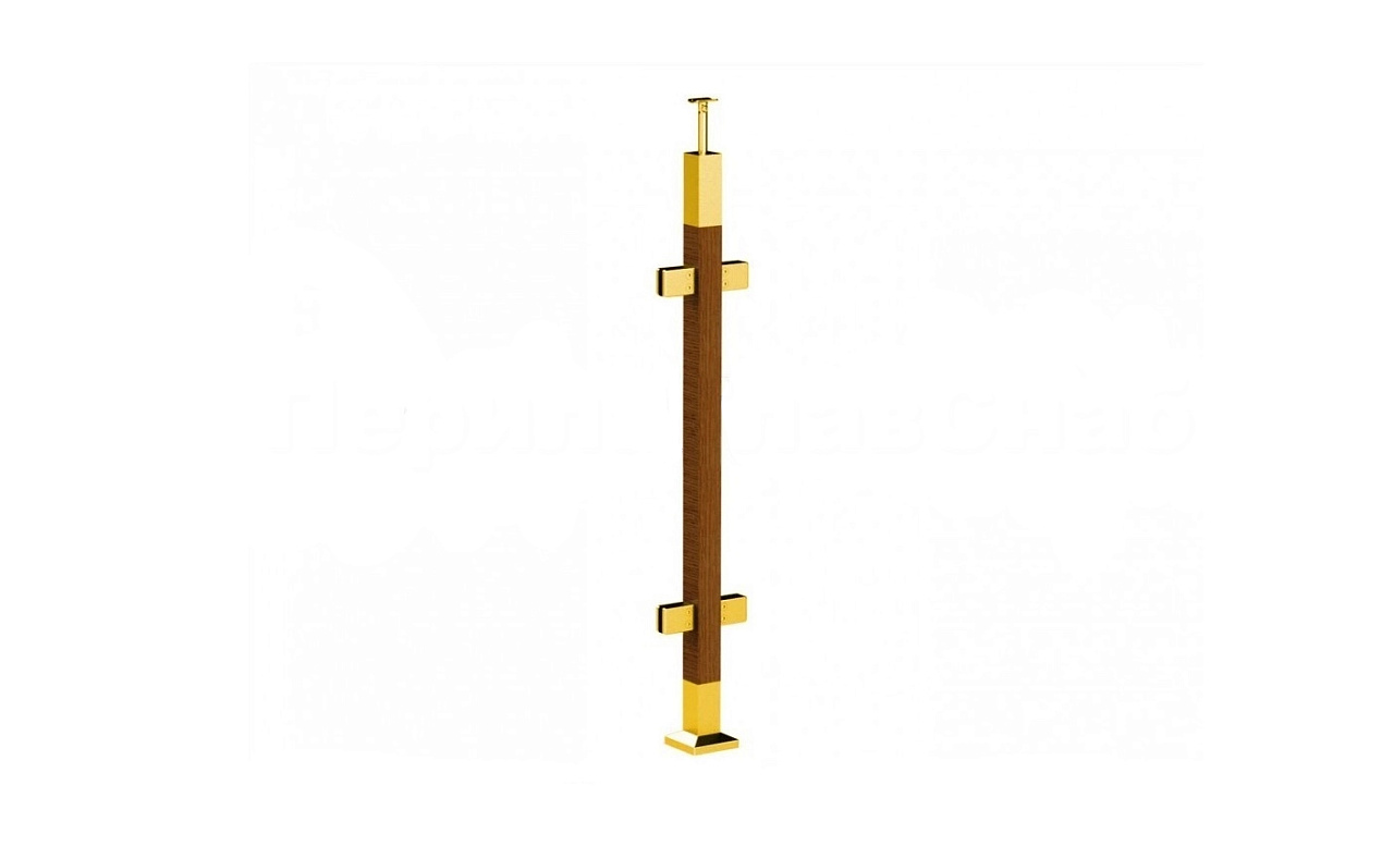 Готовая стойка 40х40х950 мм, деревянная, со вставками из нержавеющей стали 2х100 мм с 2 зажимными стеклодержателями, под золото k740-4-R-G купить в Казани