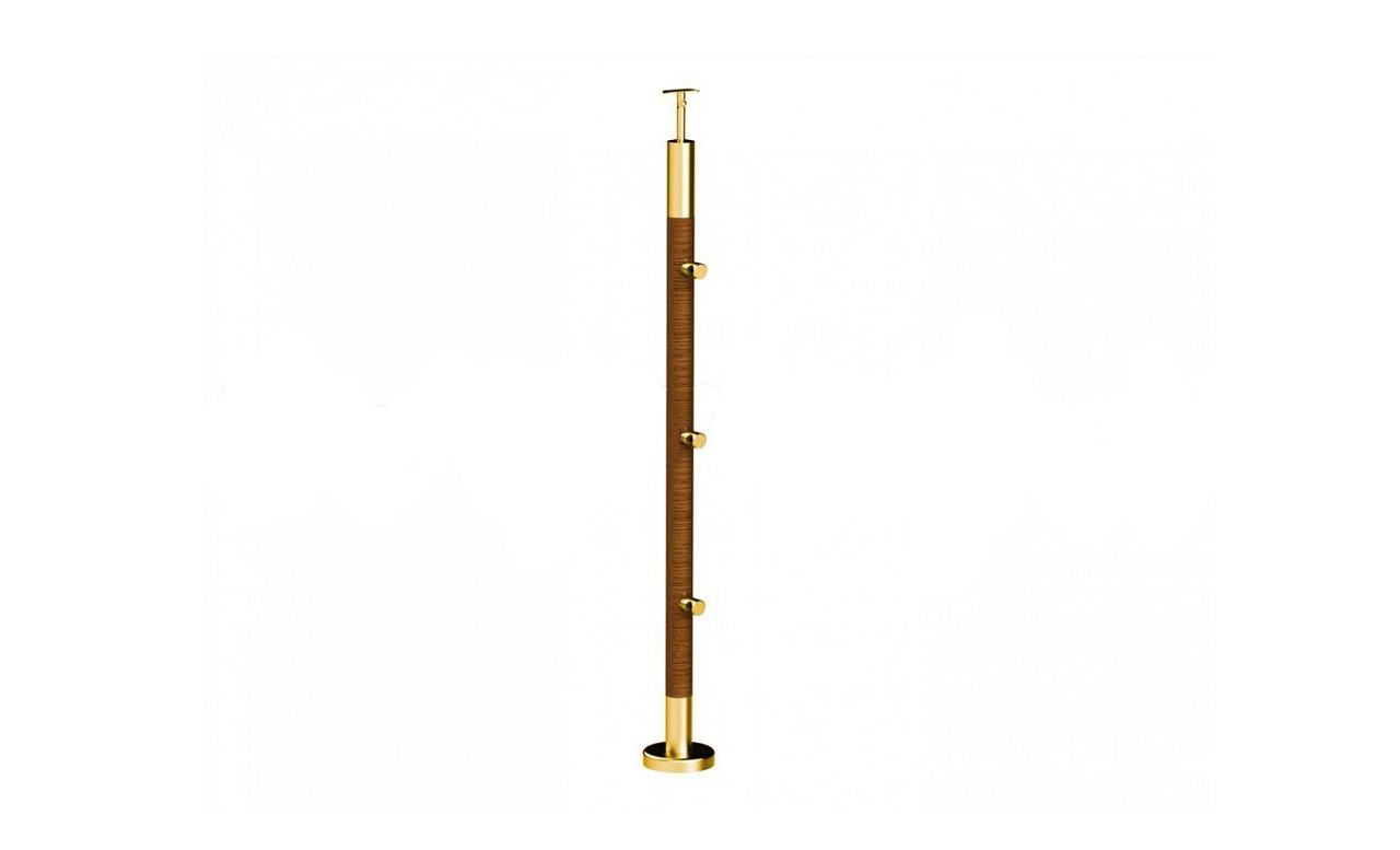 Готовая стойка Ø38,1х950 мм деревянная, со вставками из нержавеющей стали под золото 2х100 мм с 3 ригеледержателями k741-1-G
