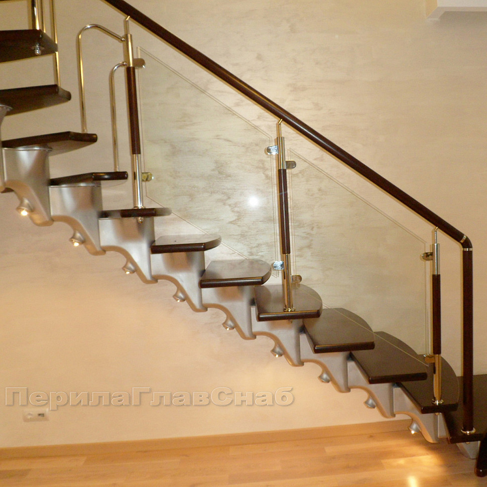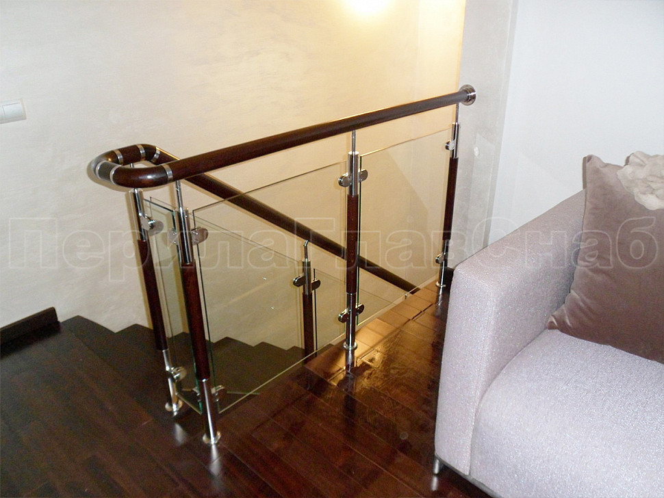 Данная стойка используются как конечная балясина справа, посередине ограждения используют балясину , а в конце ограждения справа k741-2-L. При установке данных стоек используется закаленное стекло толщиной 8мм или триплекс 4+4 Балясина исполнена в классическом стиле на основе металлических стоек и усовершенствована деревянной составляющей, благодаря которой эта стойка хорошо вписывается в дизайн современных домов. Немалую роль в этом ограждении занимает стекло, ведь стекло можно сделать не просто прозрачным, а матовым, бронзовым, с рисунком и т.п. Ваше ограждение будет не только исполнять функцию безопасности, но и станет частью дизайна в доме.