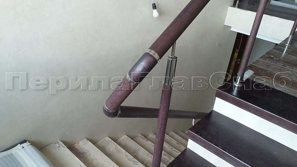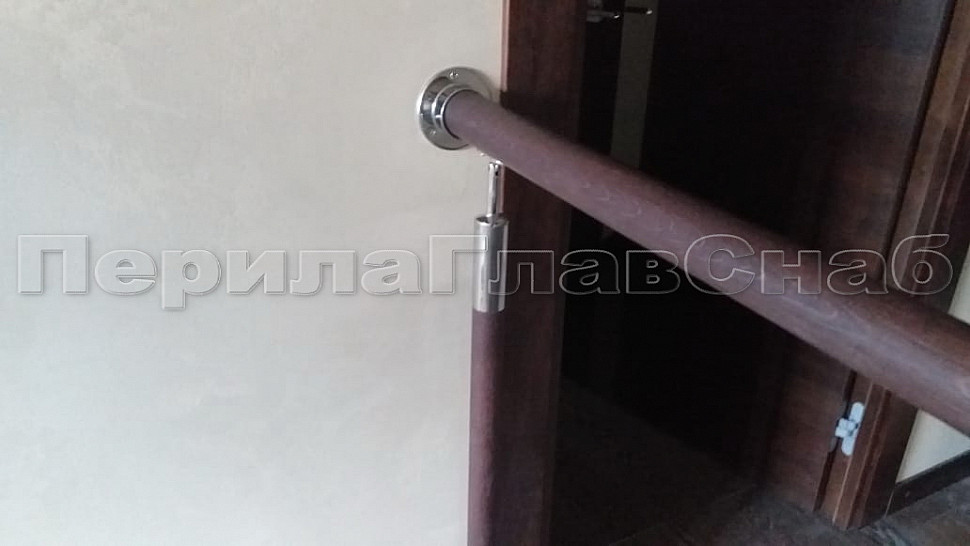 Готовая стойка Ø38,1х950 мм деревянная, со вставками из нержавеющей стали 2х100 мм с 2 стеклодержателями k741-2-R