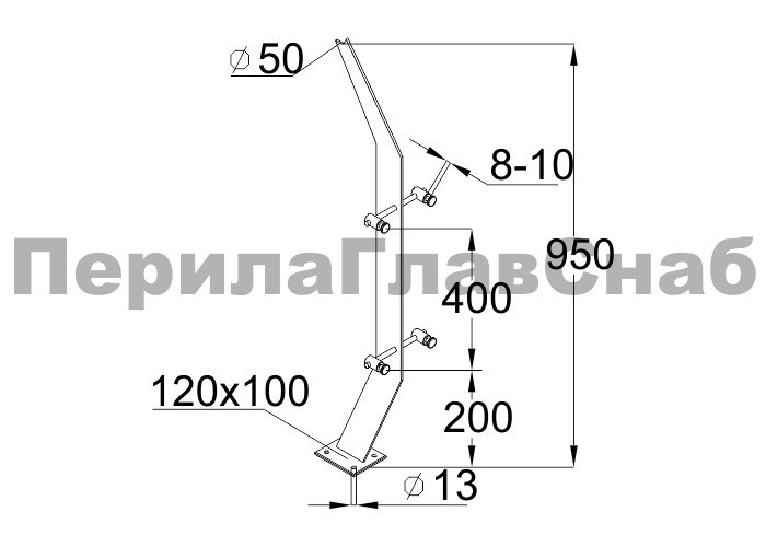 Стойка эксклюзивная с двумя спайдерными стеклодержателями, крепление в пол, нерегулируемый ложемент (AISI 304) k790
