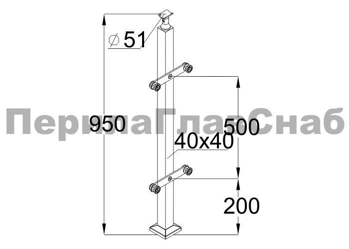 Стойка квадратная 40х40: 4 литых стеклодержателя, полированная, высота 950 мм (AISI 304) k746 купить в Казани