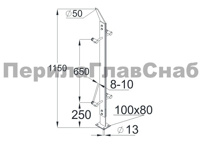 Готовая стойка Ø38,1х950 мм деревянная, со вставками из нержавеющей стали 2х100 мм с 2 стеклодержателями k741-2-L купить в Казани
