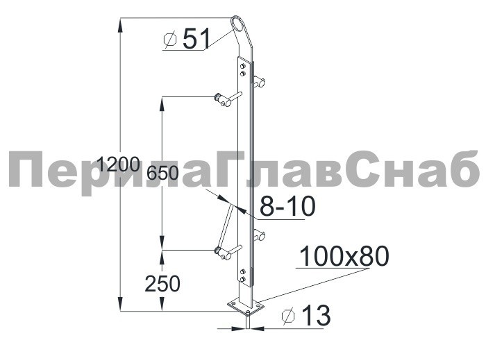 Готовая стойка Ø38,1х950 мм деревянная, со вставками из нержавеющей стали 2х100 мм с 2 стеклодержателями k741-2-L купить в Казани