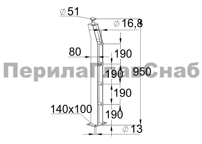 Готовая стойка 40х40х950 мм, деревянная, со вставками из нержавеющей стали 2х100 мм с 3 ригеледержателями k740-1-G купить в Казани