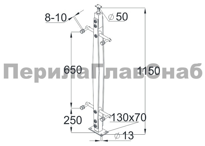 Готовая стойка Ø38,1х950 мм деревянная, со вставками из нержавеющей стали 2х100 мм с 4 стеклодержателями k741-3 купить в Казани