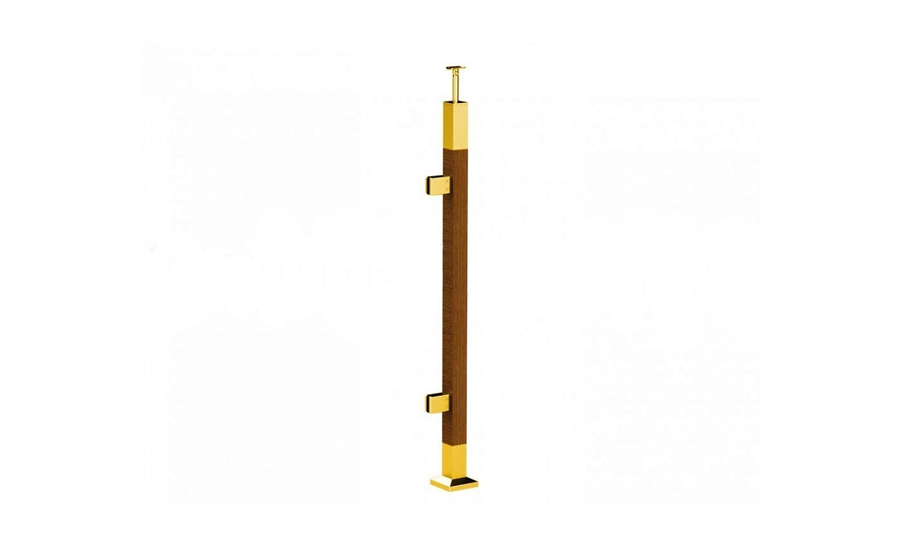Готовая стойка 40х40х950 мм, деревянная, со вставками из нержавеющей стали 2х100 мм с 2 зажимными стеклодержателями, под золото k740-4-R-G купить в Казани