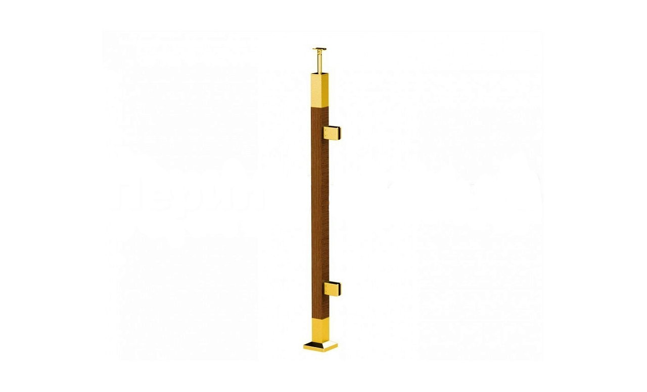 Готовая стойка 40х40х950 мм, деревянная, со вставками из нержавеющей стали 2х100 мм с 2 зажимными стеклодержателями, под золото k740-4-L-G купить в Казани