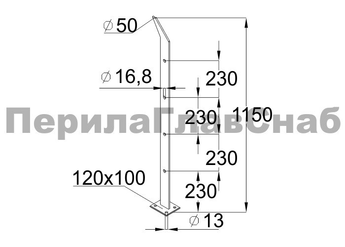 Готовая стойка 40х40х950 мм, деревянная, со вставками из нержавеющей стали 2х100 мм с 3 ригеледержателями k740-1-G купить в Казани