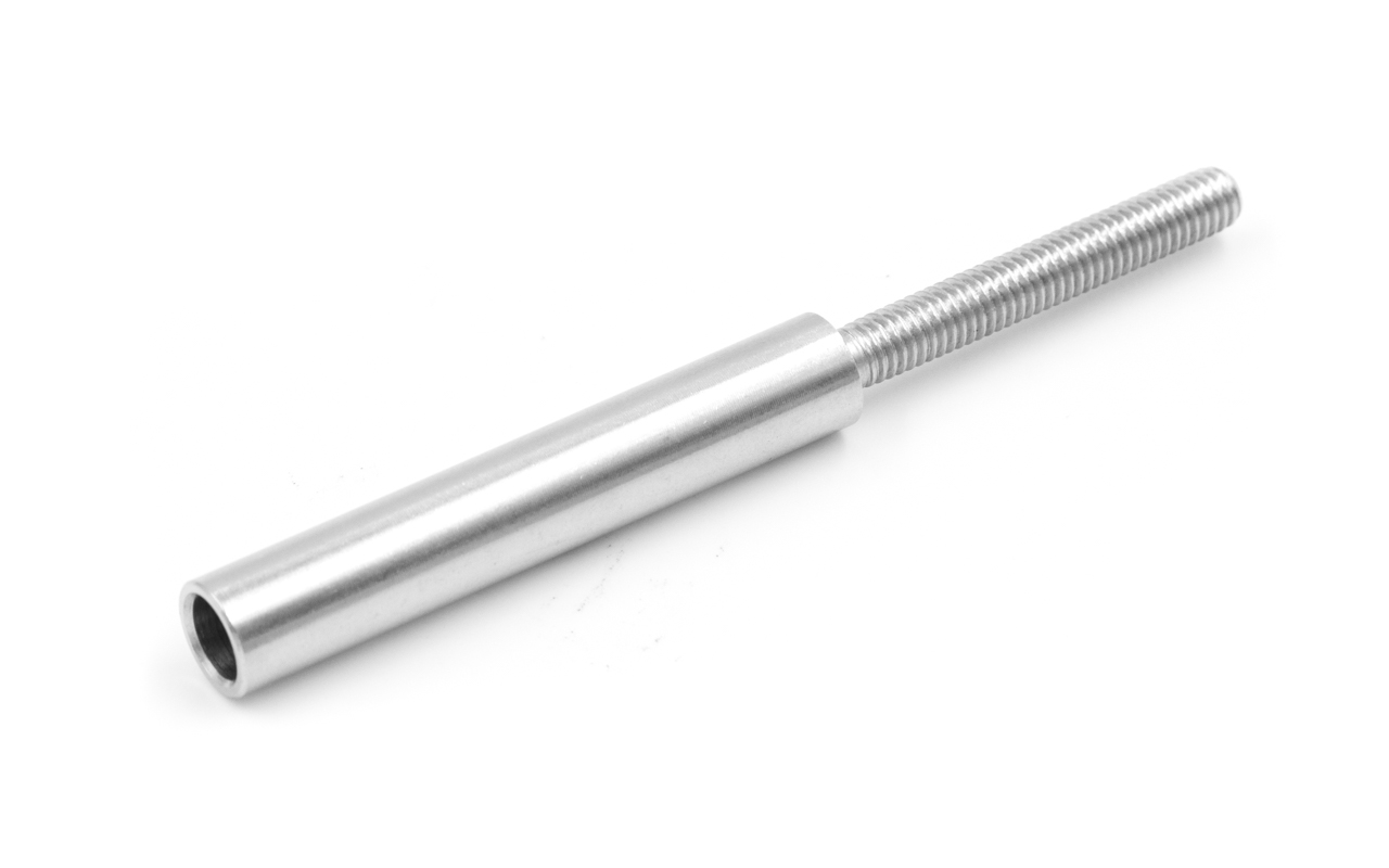 Держатель тросика Ø6 мм, обжимной с резьбой длиной 40 мм, М6 наружной, шлифованный (AISI 304)