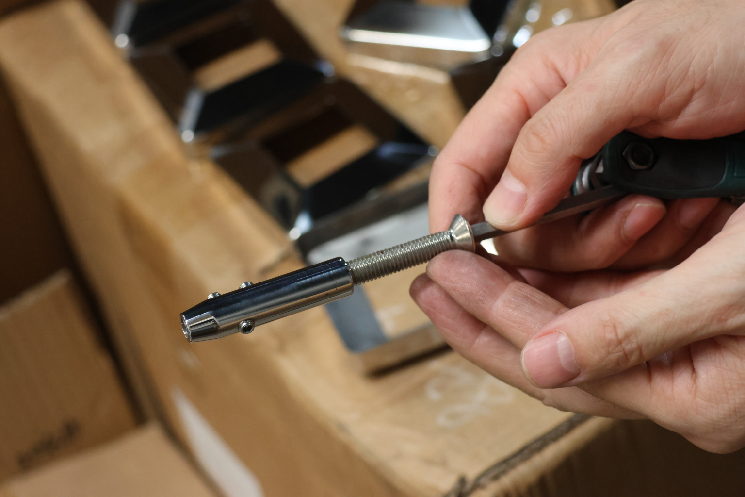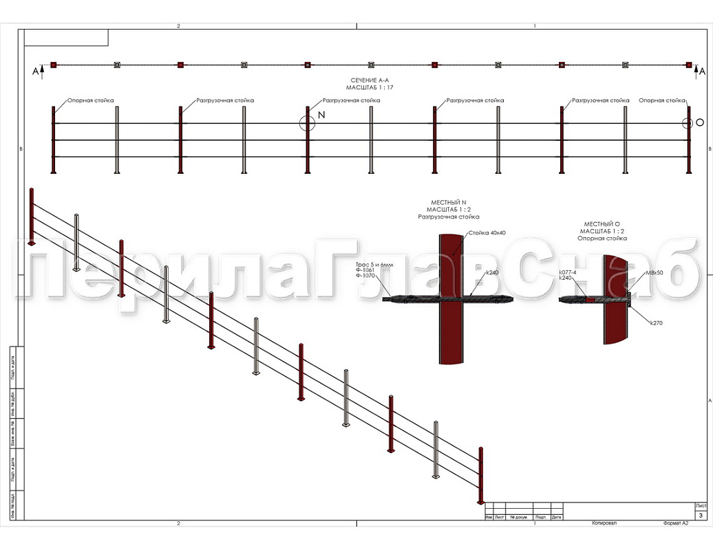 Устанавливается на стойку ограждения с тросами, как правило в премиум классе, так как практически все конструкции подобного рода являются эксклюзивными и неповторимы по дизайну. Держатель служит для натяжения тросика между стойками, как правило, на ограждении их всего требуется по два на каждый трос. Таким образом, тросик фиксируется держателем на первой и последней стойке, дабы сохранить возможность регулировки силы натяжения.